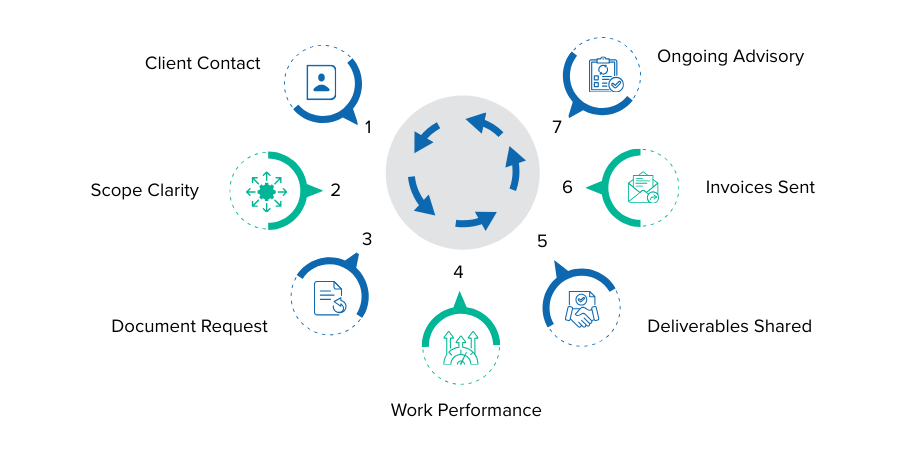 Every accounting engagement follows a predictable rhythm. A prospective client makes contact. Initial discussions clarify the scope. Documents are requested. Work is performed. Deliverables are shared. Invoices are sent. Ongoing advisory conversations continue.
