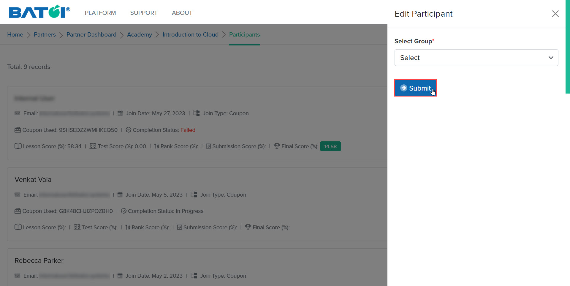 - Viewing Participant Submissions in the Batoi Academy